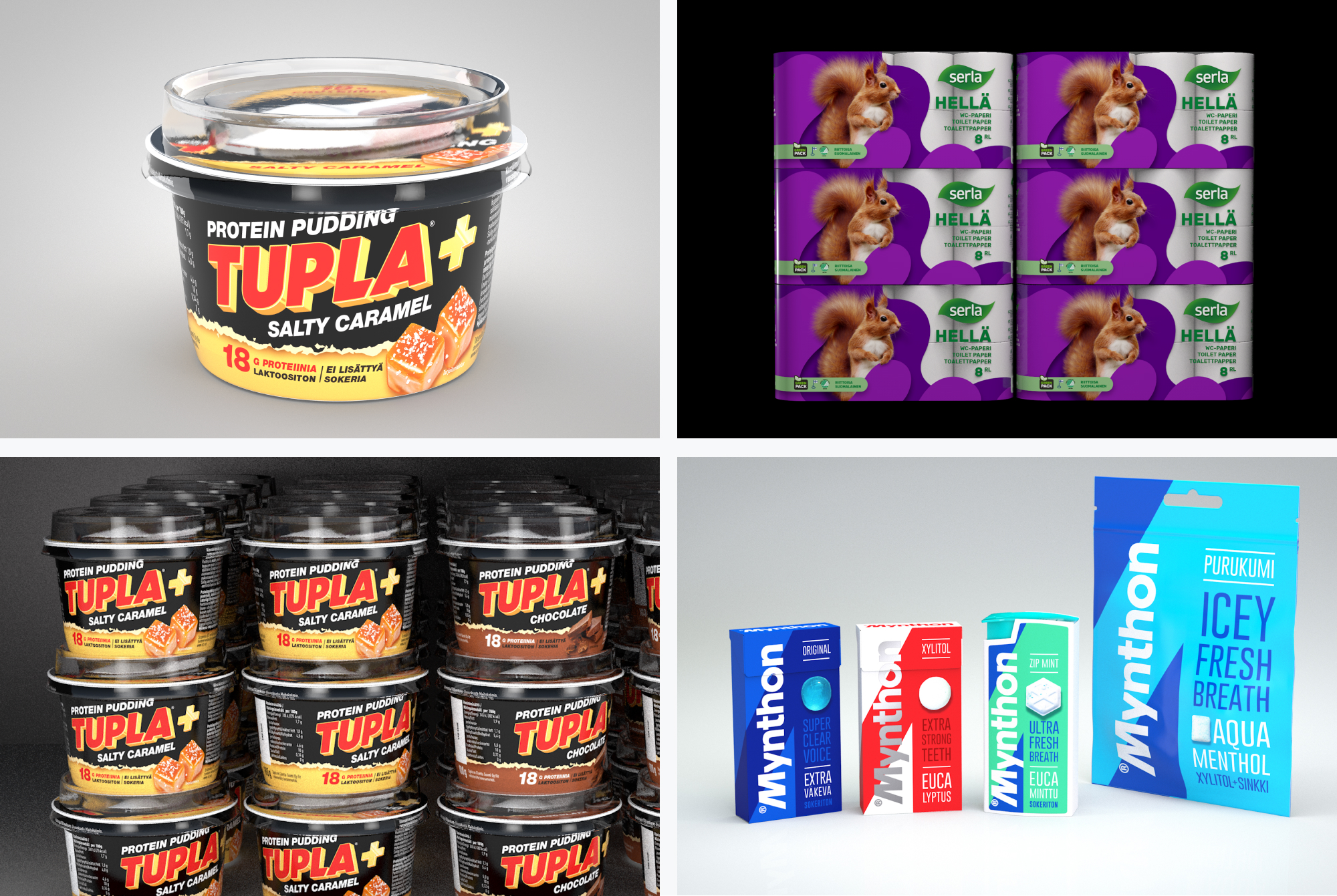 Various packaging mockups modeled in Blender and Cinema 4D. Rendered with Cycles, C4D Physical Render, Redshift, and Octane.