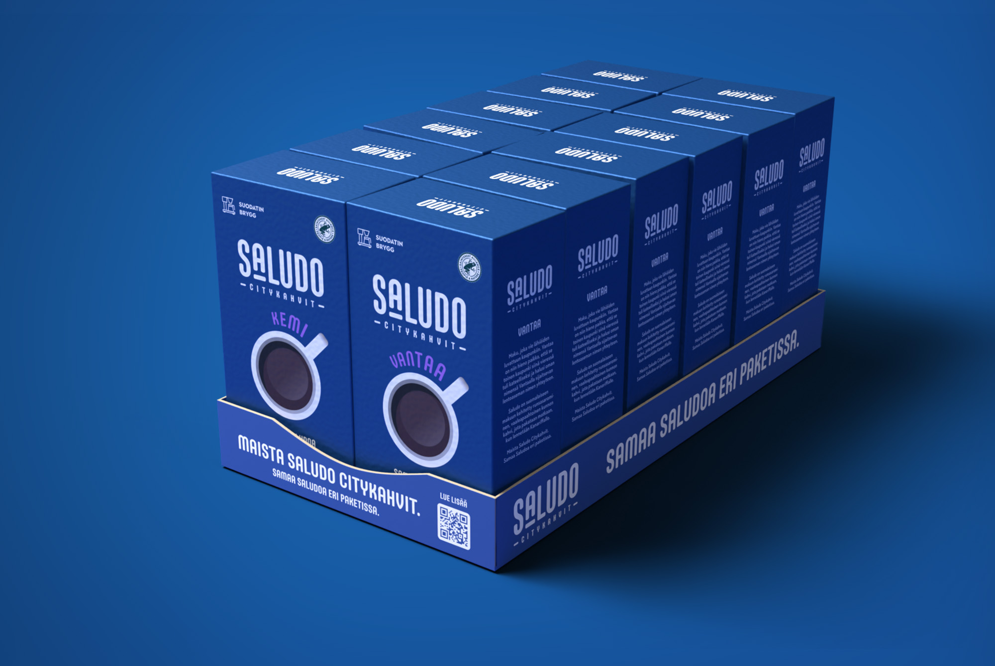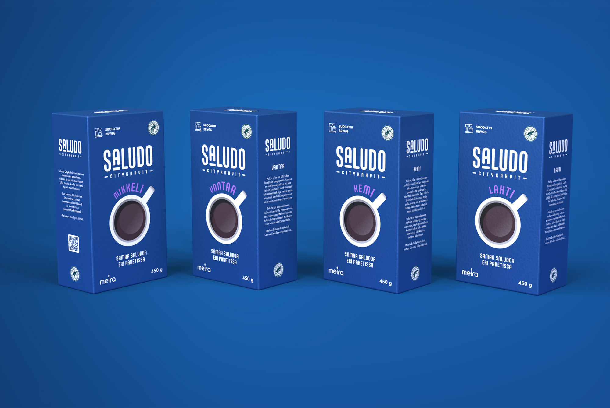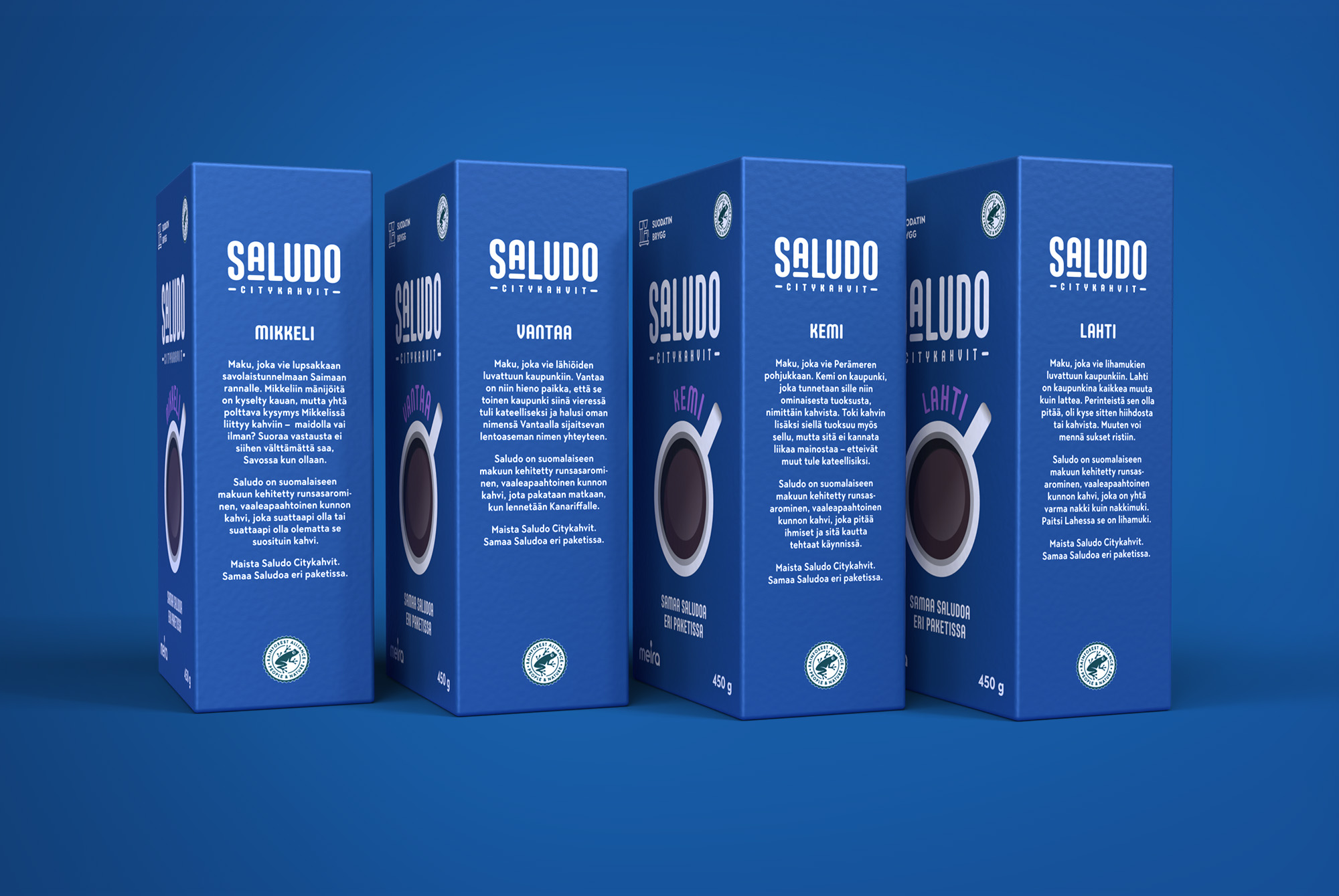 Twelve ordinary Finnish cities, along with their unique stories, were featured on Saludo City Coffee packages, promising the same Saludo coffee in a new package.