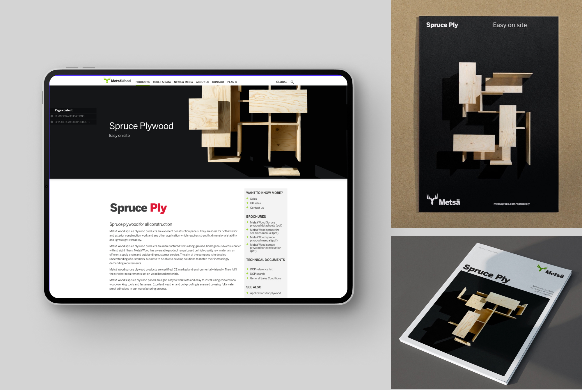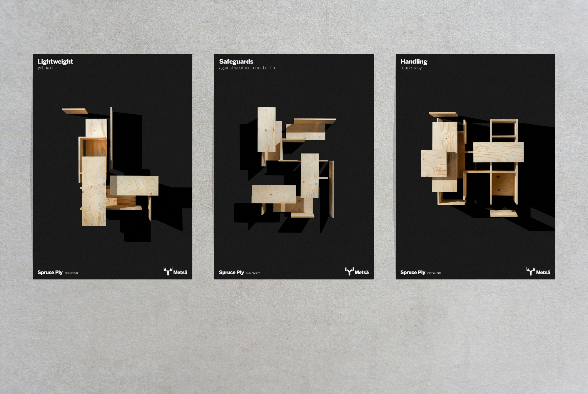 A visual concept was created for Metsä’s spruce plywood products, communicating the key features of the product in a simple and elegant way.